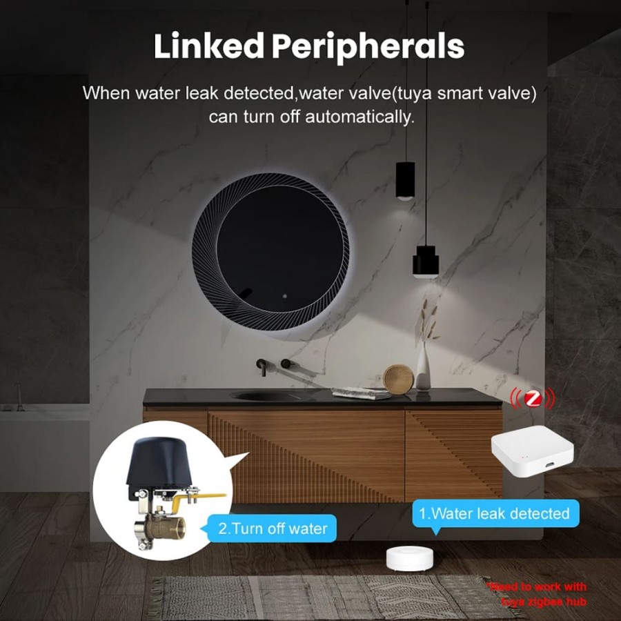 Датчик протечки воды/затопления Aalarm SWLSD-898 ZigBee 3.0 – компактная беспроводная модель, совместимая с системами умного дома работающими по протоколу ZigBee, и управляющаяся посредством программы Tuya Smart/Smart Life, установленной на смартфон.