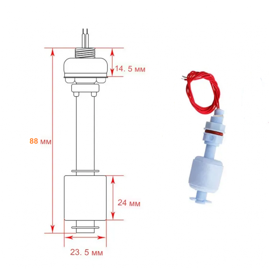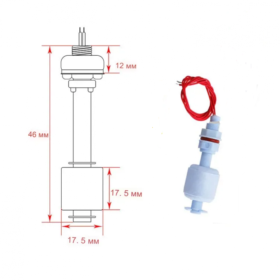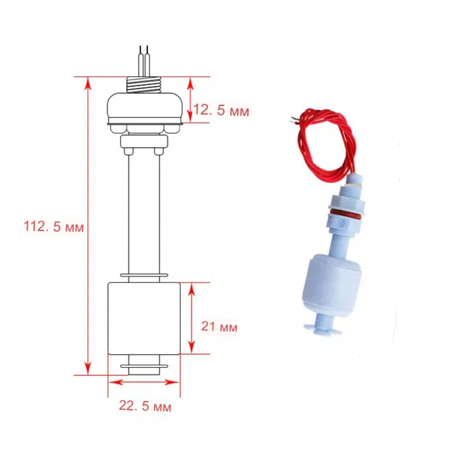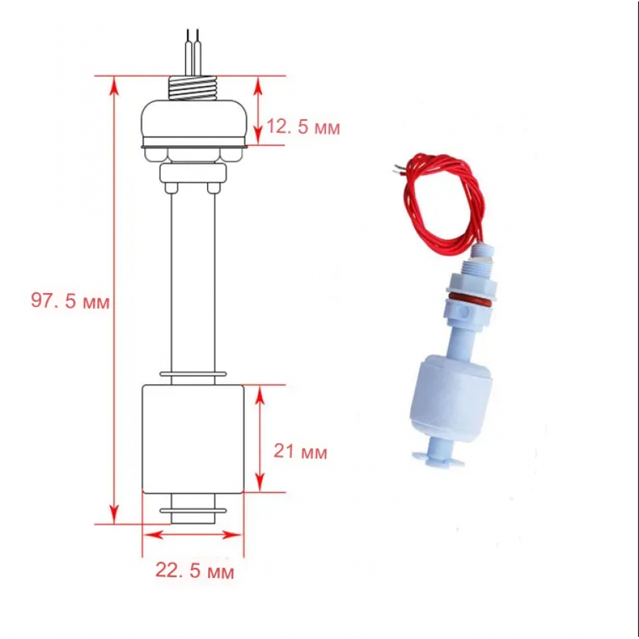 Вертикальный поплавковый выключатель/датчик уровня воды ALFA AQsw 85 мм., используется для определения уровня жидкости в резервуарах, и применяется в системах полива, резервуарах и емкостях для воды, аквариумах, садоводстве и в бытовых целях. ALFA AQsw может передавать сигнал и приводить в действие насос, индикатор, сигнализацию или другое подобное устройство.