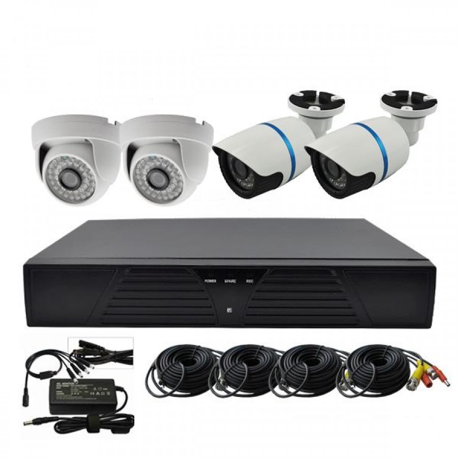 Готовый комплект видеонаблюдения состоит из четырёх AHD видеокамер c HD разрешением 720 P и 4-х канального регистратора. Прибор оснащён ночной подсветкой, что обеспечивает отчётливую видеосъемку 24 часа в сутки. Видеорегистратор ведёт съемку в различных режимах, в том числе во время обнаружения движения на территории, что позволяет экономить память на жестком диске. В качестве полезных настроек, устройство может отправлять изображение объекта через встроенный почтовый клиент. И владелец на своем смартфтоне получит почтовое уведомление с присланным изображением. Благодаря возможности бесплатного подключения к интернет облаку, владелец может просмотреть текущую обстановку на объекте из любой точки мира, где есть Интернет. Для установки и настройки системы не нужно обладать специальными навыками и знаниями – всё просто и быстро.