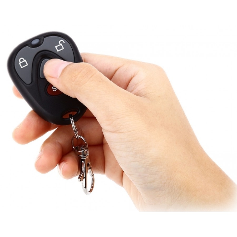 Брелок-пульт GS-RMC07 для дистанционного управления сигнализацией обеспечивает контроль на расстоянии до 100 метров на открытой местности. Устройство оснащено четырьмя кнопками: постановка, снятие с охраны, охрана дома и тревожная кнопка.