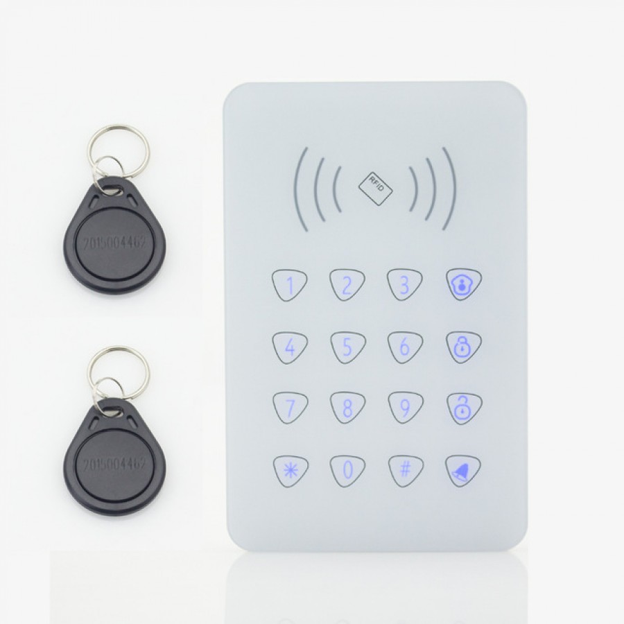 Беспроводная сенсорная панель служит для дистанционного включения или отключения сигнализации путем набора секретного кода или используя специальные брелки с RFID меткой. Устанавливается при входе в охраняемое помещение, позволяя упростить и систематизировать управление сигнализаций. Применяется, как правило, на объектах доступ к которым требуется большому количеству людей. RFID брелки имеют невысокую стоимость и позволяют его владельцу снять устройство с охраны. Панель оборудована противосъемным датчиком. Кроме этого данная панель поддерживает режим дверного звонка. Выполнена из высококачественного ABS пластика. Устройство поддерживает работу с охранными системами GS-G90B, GS-52G, GS-S1