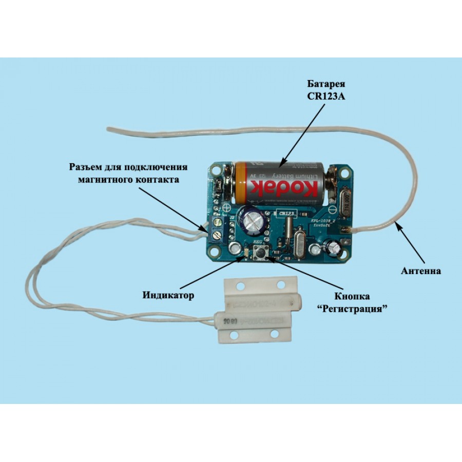 Устройство также можно использовать в качестве радиоудлинителя для всех проводных датчиков, которые имеют релейный выход (к примеру, датчик газа). Прибор сам контролирует заряд батареи и оповещает владельца, если она разряжается.