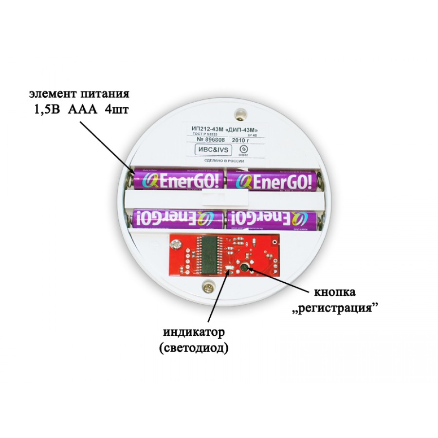 Датчик разработан на основе пожарного извещателя ИП212-43М. Устройство подключается к охранным системам Эритея Аура 3 и Эритея Аутра 4.