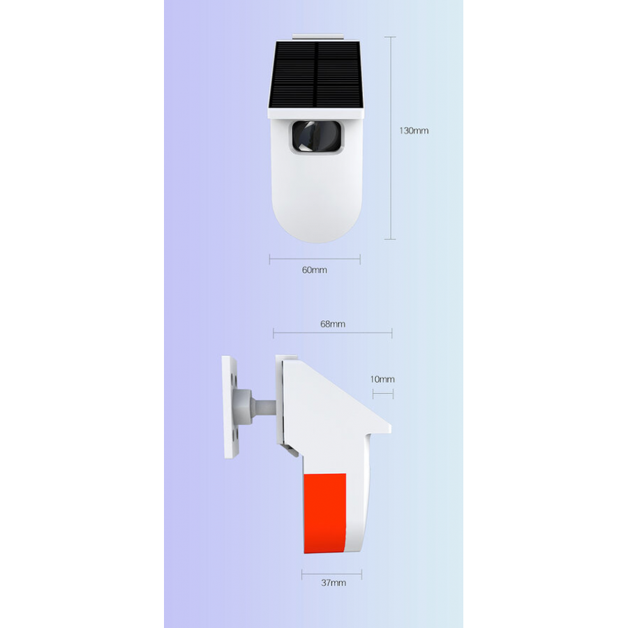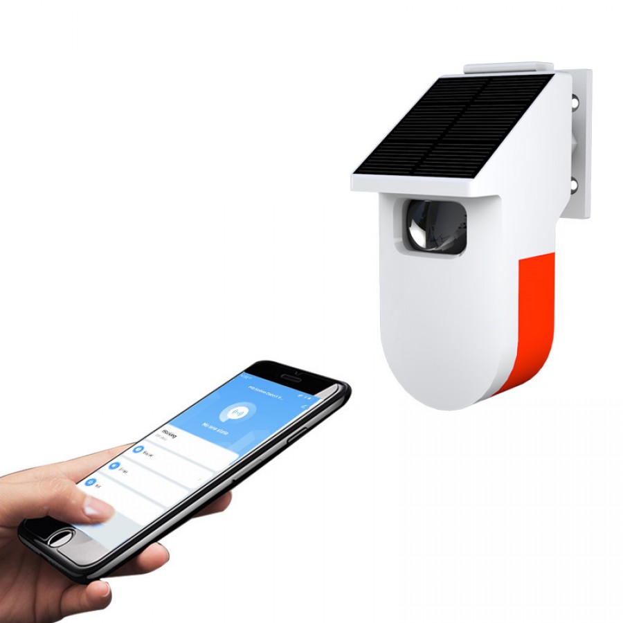 Уличный автономный WiFi-датчик движения на солнечных батареях со звуковым оповещением Aalarm PIR-S – моноблочная система, состоящая из уличного датчика движения, мощной сирены 100 дБ, и солнечной панели, собранных в едином корпусе.
