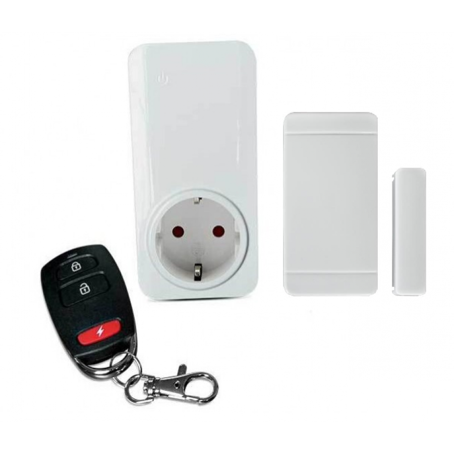 Simpal-T100 – это радиоуправляемая розетка с функциями охраны. В чем ее особенность? В том, что ею можно управлять с помощью пульта дистанционного управления, который идет в комплекте. Для чего используется? Для дистанционного включения и отключения электрических приборов. Например, с помощью Simpal-T100 можно управлять настольной лампой, кондиционером, обогревателем. Например при открытии двери(датчик открытия двери идет в комплекте) можно включить освещение в комнате.