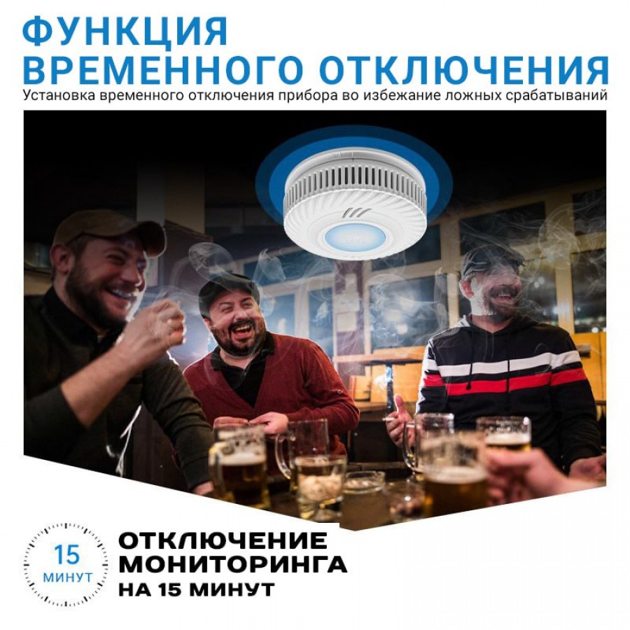 В извещателе реализована функция временного отключения для избежания ложных срабатываний, например при приготовлении пищи или курении. Включение/выключение режима осуществляется в приложении Smart Life/Tuya Smart.