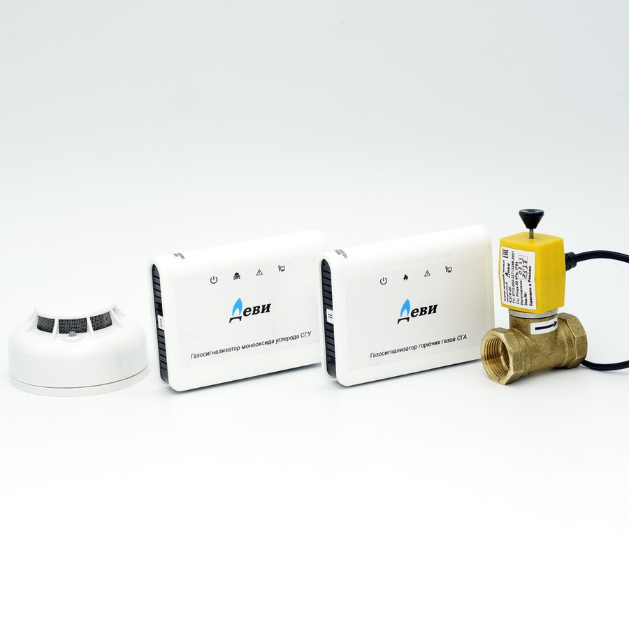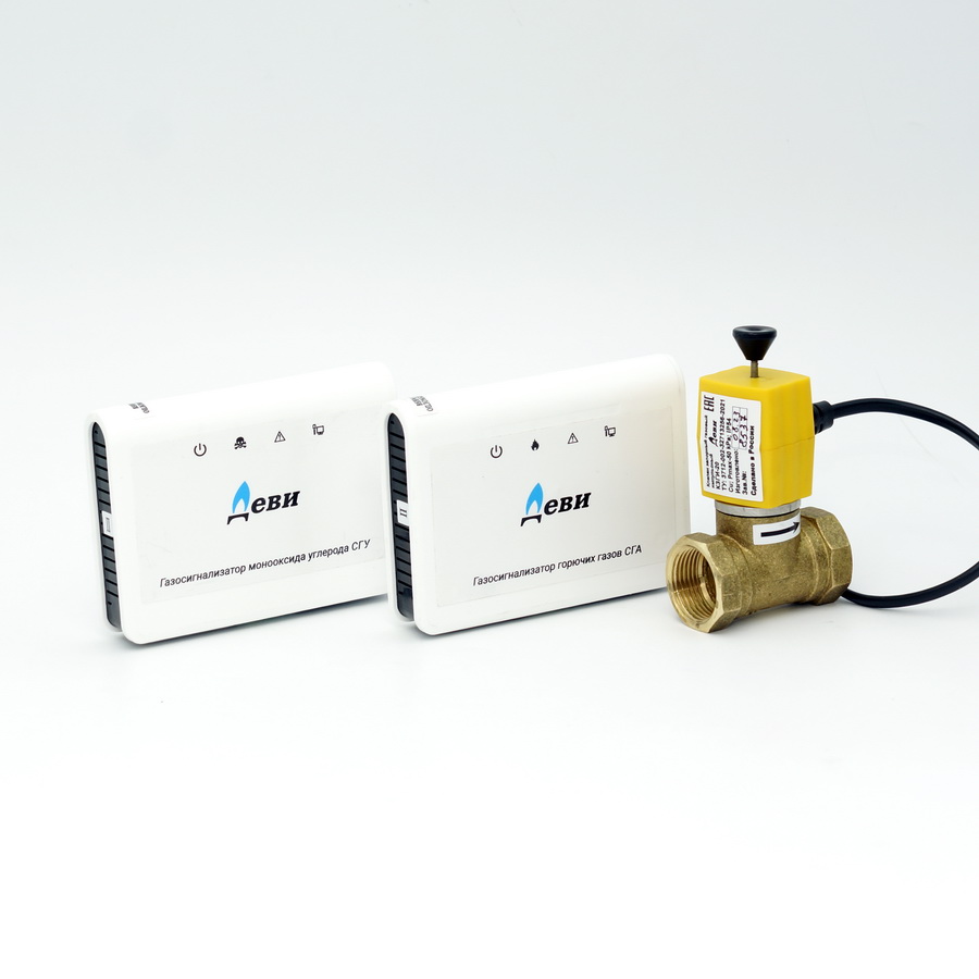 Автоматизированная система контроля загазованности АСКЗ(ДЕВИ) (природный газ + оксид углерода) с клапаном КЗГИ-20 DN20 БЫТОВАЯ, С ГОСПОВЕРКОЙ – комплект из двух сигнализаторов, предназначенный для использования на самых разных объектах: