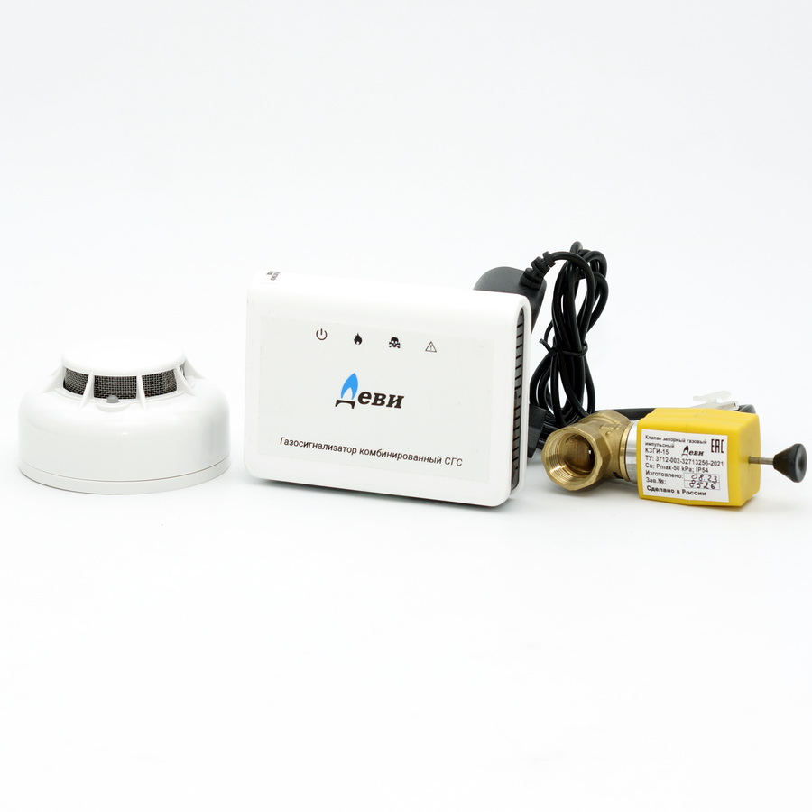 Двухкомпонентный газосигнализатор-моноблок(ДЕВИ) (природный газ + оксид углерода) с клапаном КЗГИ-15 DN15 с ГОСПОВЕРКОЙ – компактный прибор, предназначенный для использования на самых разных объектах: