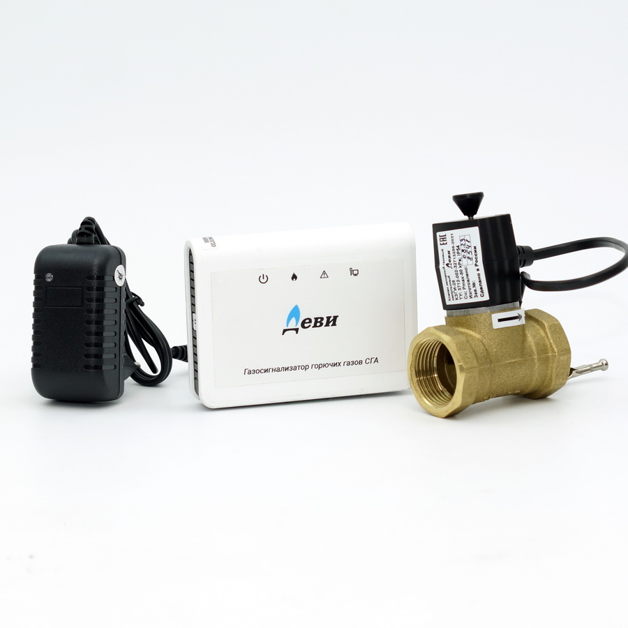 Сигнализатор загазованности СГА(природный газ) с клапаном КЗГИ-25(латунь) DN25 ГОСПОВЕРКОЙ. Предназначен для автоматического контроля содержания в воздухе природного газа (метана). Прибор издает специальный предупреждающий сигнал в случае, если степень загазованности превышает допустимую норму, и может, при наличии в комплекте клапана, перекрыть газовую магистраль.