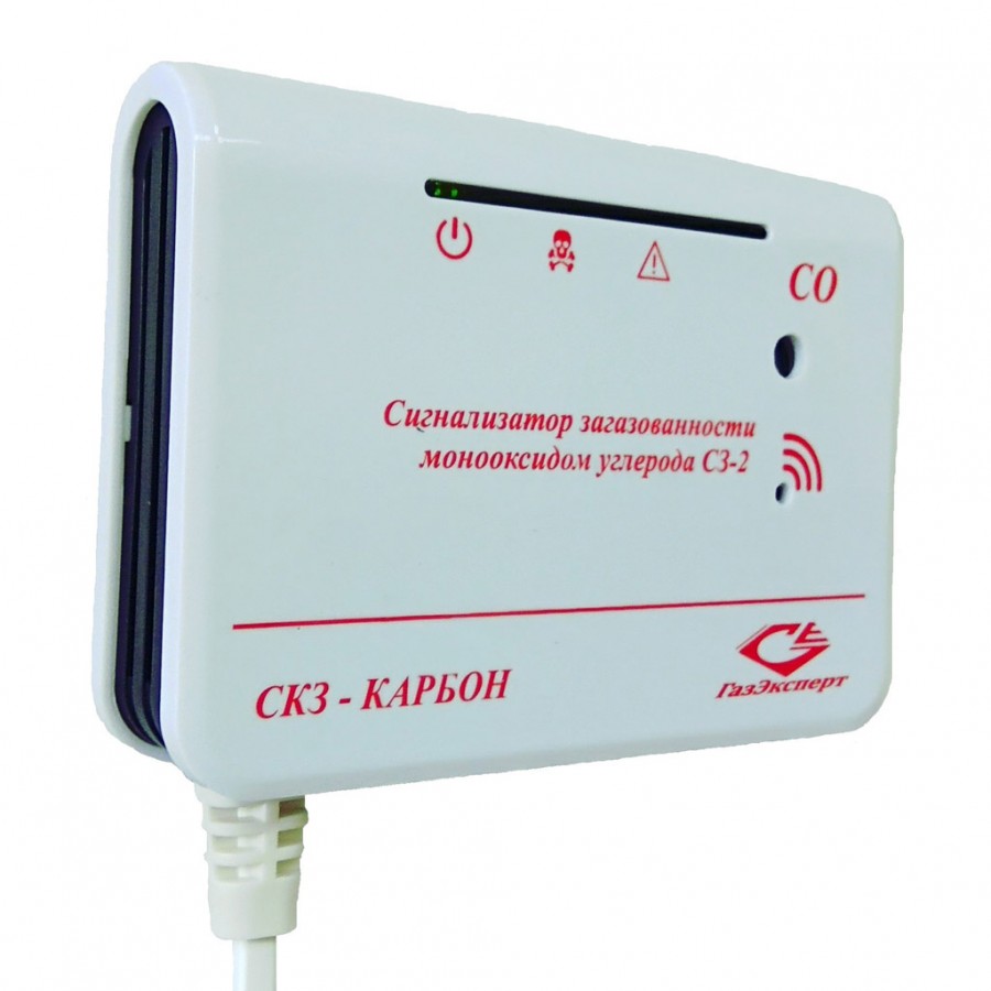 Сигнализатор загазованности СЗ-2.2 предназначен для непрерывного мониторинга в помещении критической концентрации угарного газа CO. Двухпороговый сенсор датчика СО помещен в пластиковый ABS корпус, который имеет световой индикатор состояния и звуковой оповещатель. На корпусе имеются разъемы для подключения клапана управления аварийного выключения газа и сигнализатора природного газа СЗ-1.1, который может работать в паре с данным прибором.