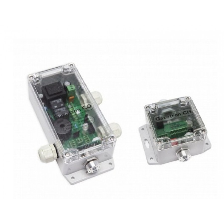 Сигнализатор загазованности CO + Датчик CH4 Gazotron – комплект из двух промышленных устройств, рассчитанных на эксплуатацию в условиях повышенной влажности и запыленности. Корпуса датчиков изготовлены из ABS пластика; стандарт защиты корпуса – IP65. Порог срабатывания сигнализатора утечки природного газа – 10 % НКПР. Датчик утечки угарного газа имеет два порога срабатывания (I – 20 мг/м3, II – 100 мг/м3).