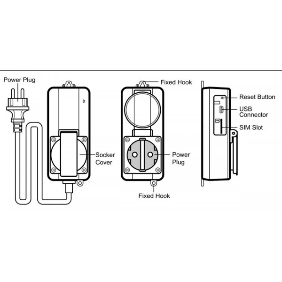 SimPal WS250 - это наружная GSM- розетка с дистанционным управлением и степенью пылевлагозащиты IP44, предназначенная для включения и выключения электрических устройств, и измерения их потребляемой мощности. Питание от сети, контролируемое устройством, может быть подключено с мобильного телефона с помощью SMS, телефонного звонка или мобильного приложения (приложение для Android / iOS).