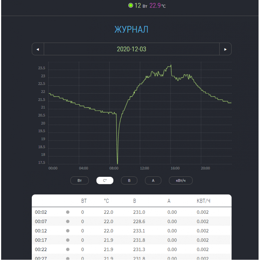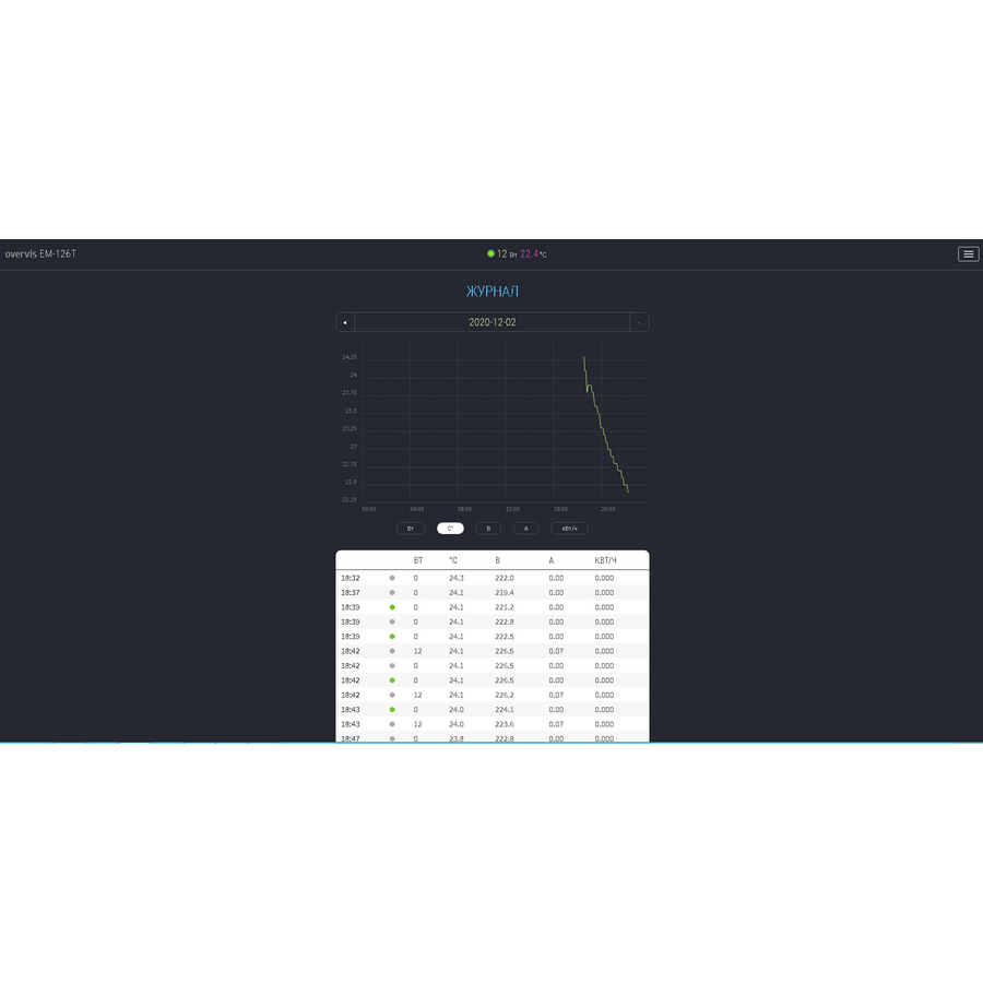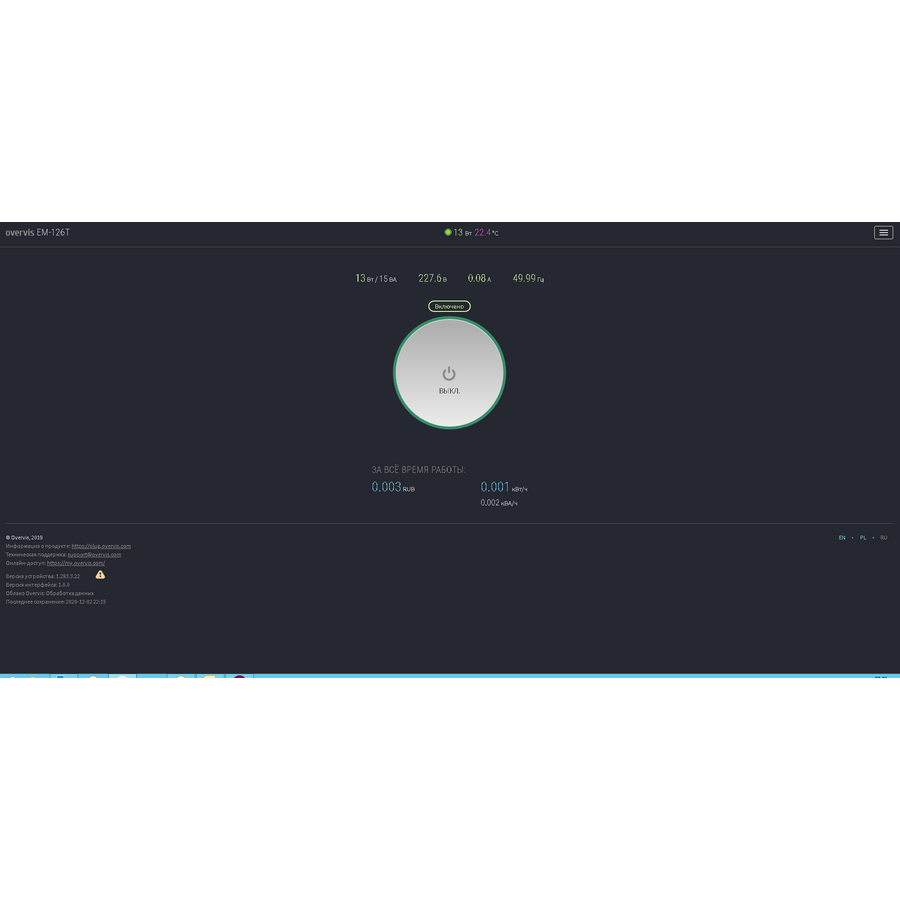Подводя итог: Удаленное управление. Через любой браузер любого компьютера, планшета, смартфона. Контроль температуры. Устройство позволяет контролировать температуру, хранить , создавать отчет и поддерживать режим отопления или охлаждения в зависимости от температуры. Контроль электроэнергии. Контроль нагрузки, защита подключаемых устройств. В меню приложения можно настроить пороговые значения отключения прибора по нагрузке, вольтажу, частоте сети. Также можно следить за своими расходами, контролируя кв.ч подключаемого устройства. Журнал событий. Параметры нагрузки сети, вольтажа, температуры, энергопотребления во времени. Можно создавать графики, следить за пиковыми значениями, контролировать расходы.