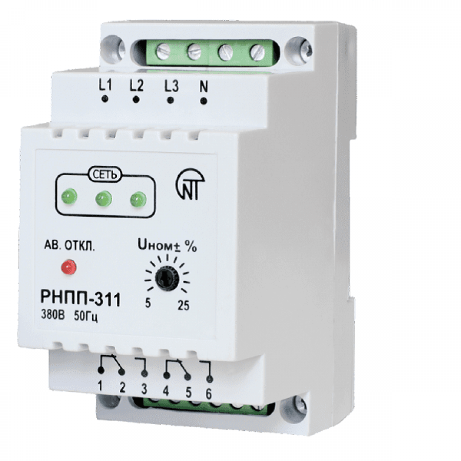 Реле РНПП 311 используется для контроля напряжения в электросети. Устройство работает по принципу отсекателя, обесточивая оборудование в момент выхода параметров сети за установленные пользователем пределы. В тот момент, когда нагрузка возвращается в норму, РНПП-311 включает питание.