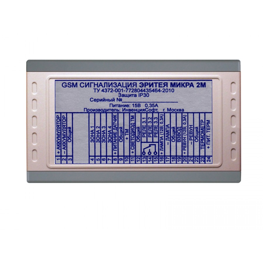 Эритея Микра 2М ─ современная проводная GSM сигнализация, предназначенная для охраны и контроля жилых помещений, дач, гаражей и офисов. Устройство немедленно оповещает владельца, если на охраняемую территорию проникают посторонние, и незамедлительно сообщает о срабатывании датчиков пожара, газа, воды и других. Система проста и понятна в использовании.