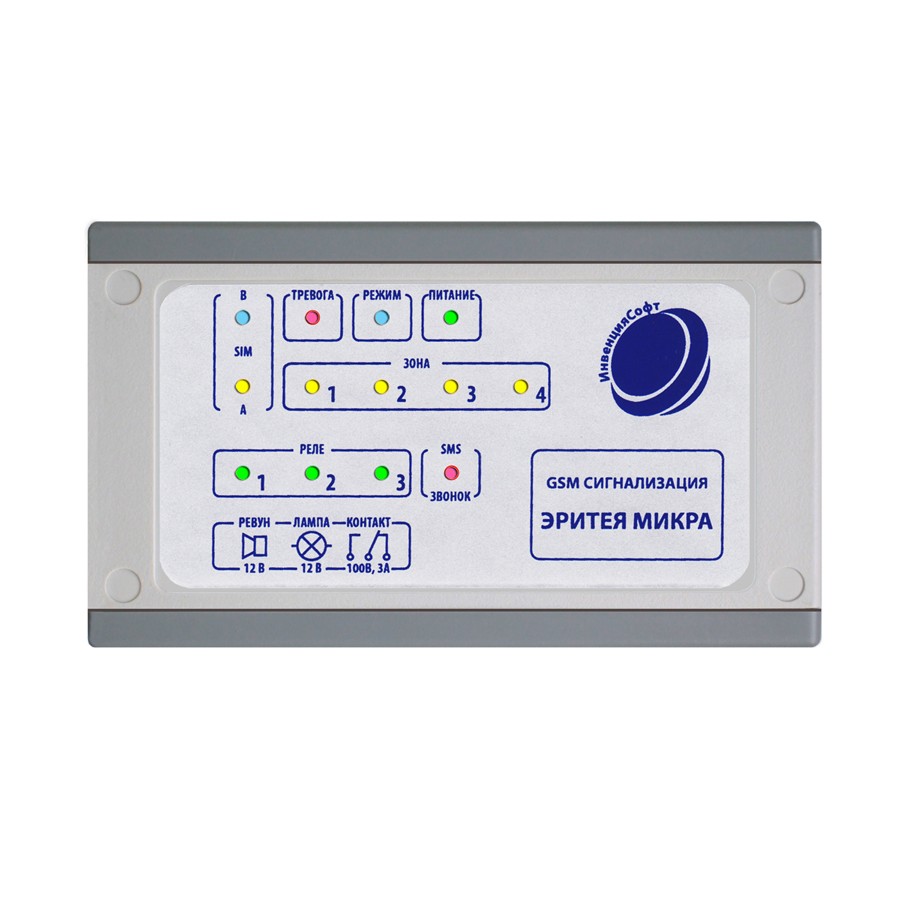 Эритея Микра 3 ─ современная многофункциональная GSM сигнализация, которая предназначена для охраны объекта от вторжения посторонних лиц, контроля температурного режима в помещении и удалённого управления отоплением в доме.