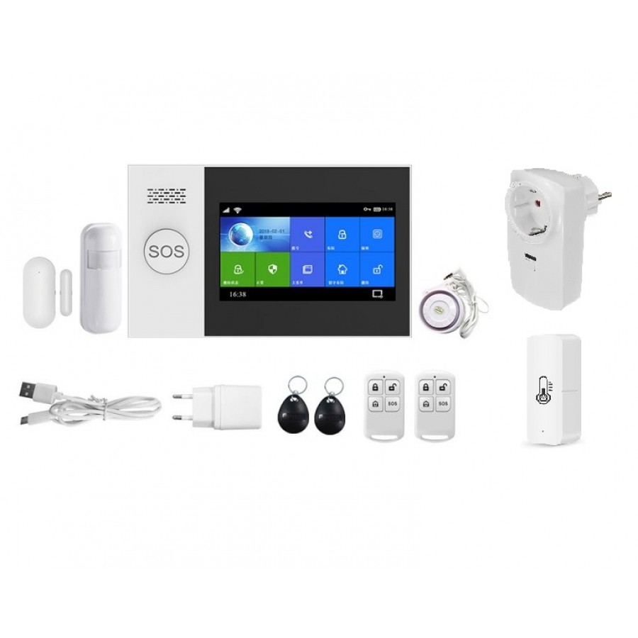 Охранная сигнализация ALFA G107 - 2G c WIFI подключением – продуманный комплект, предназначенный для обеспечения безопасности частных домов, квартир, дач, небольших коммерческих и офисных помещений. Система состоит из центрального блока сигнализации с сенсорным цветным дисплеем и кнопкой SOS, а также периферического оборудования. В комплекте датчик обнаружения движения, датчик открытия двери/окна, проводная сирена, два пульта дистанционного управления и две RFID карты. При желании систему можно дополнить любым другим периферическим оборудованием.