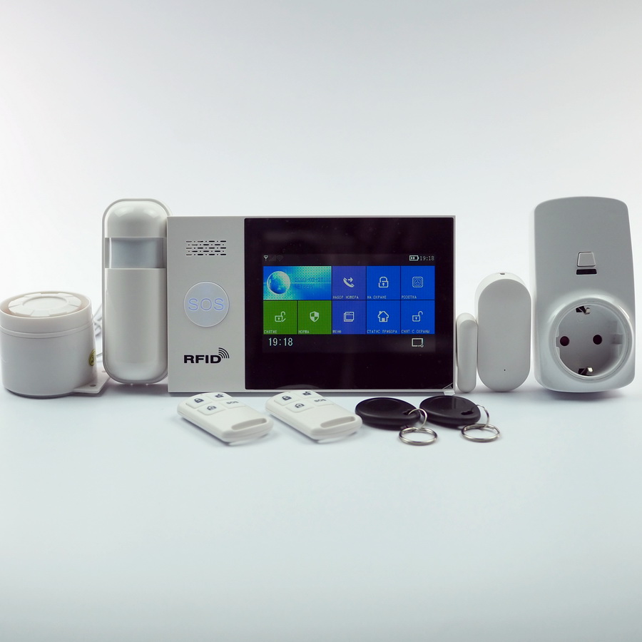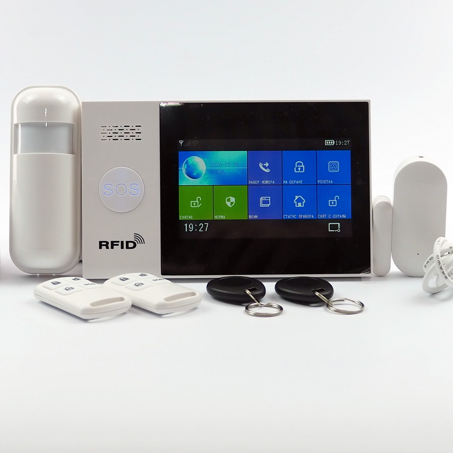 Охранная сигнализация ALFA G107 - 2G c WIFI подключением – продуманный комплект, предназначенный для обеспечения безопасности частных домов, квартир, дач, небольших коммерческих и офисных помещений. Система состоит из центрального блока сигнализации с сенсорным цветным дисплеем и кнопкой SOS, а также периферического оборудования. В комплекте датчик обнаружения движения, датчик открытия двери/окна, проводная сирена, два пульта дистанционного управления и две RFID карты. При желании систему можно дополнить любым другим периферическим оборудованием.