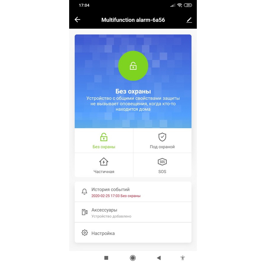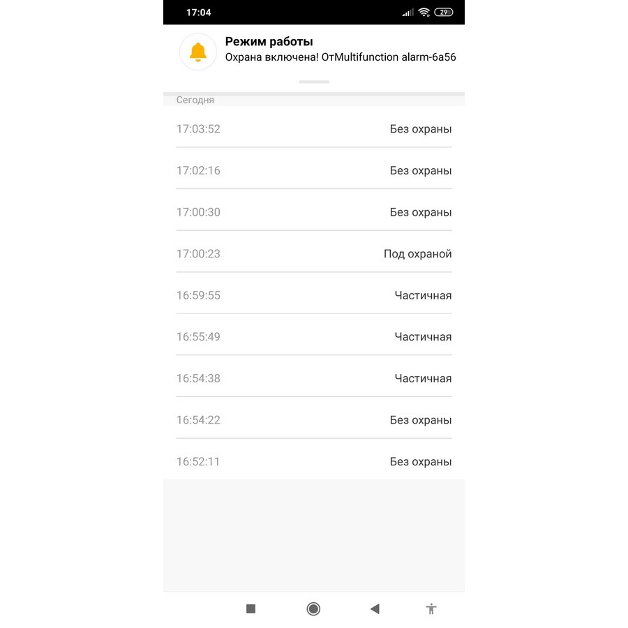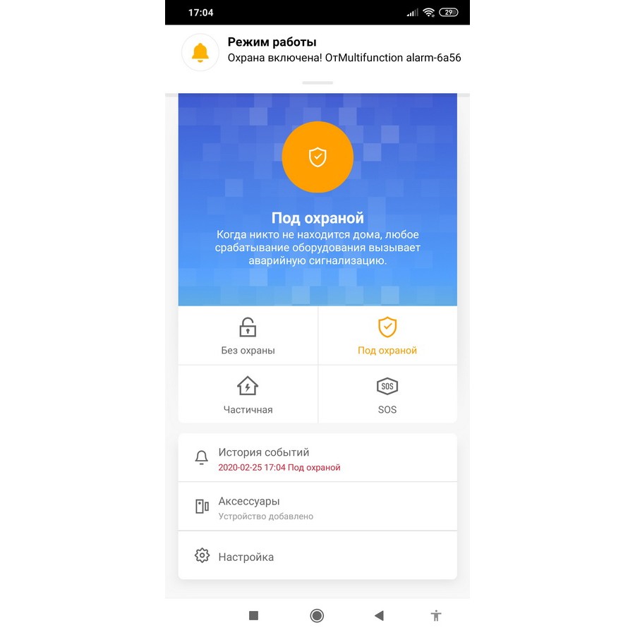 - Удаленное управление: постановка на охрану /снятие с охраны, настройка и управление периферическим оборудованием, переименование охранных зон;