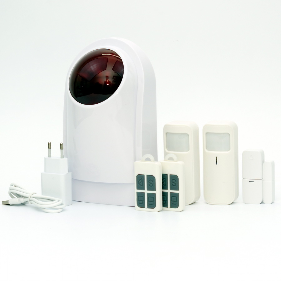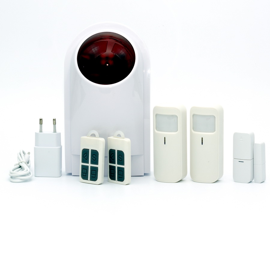 Охранная светозвуковая сигнализация ALFA A1.2.1 – бюджетное охранное решение, предназначенное для мгновенного оповещения о вторжении на территорию. В комплекте 2 датчика движения, датчик открытия, 2 пульта управления и беспроводная сирена (мощность 105 дБ). При срабатывании одного из датчиков либо при нажатии тревожной кнопки на пульте ДУ мгновенно включается звуковое оповещение.