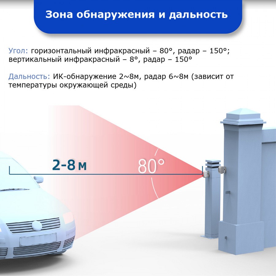 В детекторе, для улучшения стабильности работы и предотвращения ложных срабатываний, установлены два сенсора: инфракрасный пассивный и радиоволновой.