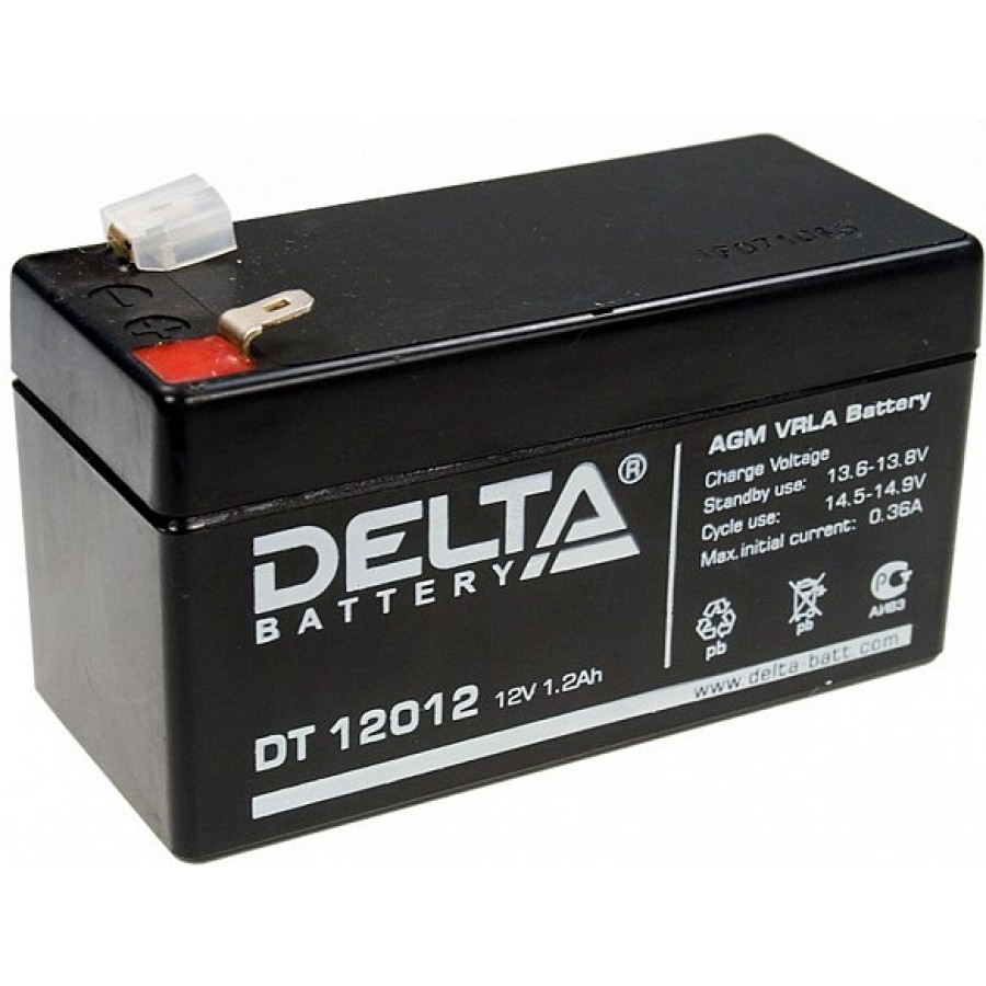 Герметизированный VRLA cвинцово-кислотный аккумулятор Delta DT 12012 напряжением 12В и емкостью 1.2Ач изготовлен по технологии AGM (с микропористым заполнителем, пропитанным электролитом). Корпус изготовлен из негорючего ABS пластика. Срок службы аккумулятора рассчитан на 3-5 лет работы. Аккумулятор предназначен для работы в режиме постоянного подзаряда (т.н. буферный режим), обладает низким внутренним сопротивлением и саморазрядом.