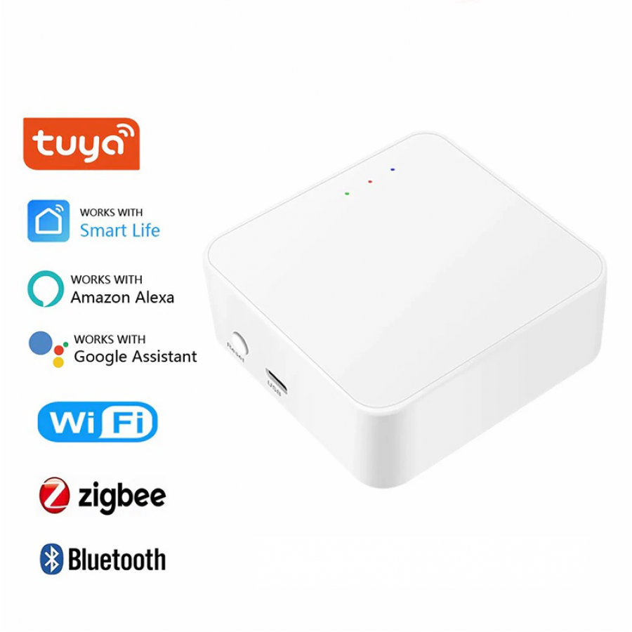 Центр управления умным домом Aalarm SG-5S с поддержкой протоколов Zigbee 3.0 и Bluetooth (TuyaSmart/Smartlife)- беспроводной многорежимный хаб, предназначенный для коммутации различных устройств и датчиков, работающих под управлением протокола Zigbee, в единую сеть. Настройка и контроль системы осуществляется с помощью приложения TuyaSmart/Smartlife, установленного на ваш телефон. Данный шлюз отличается простотой настройки и стабильностью работы в сети, и позволяет создавать не только умные сети Zigbee, но и настраивать и контролировать Bluetooth-датчики и устройства.