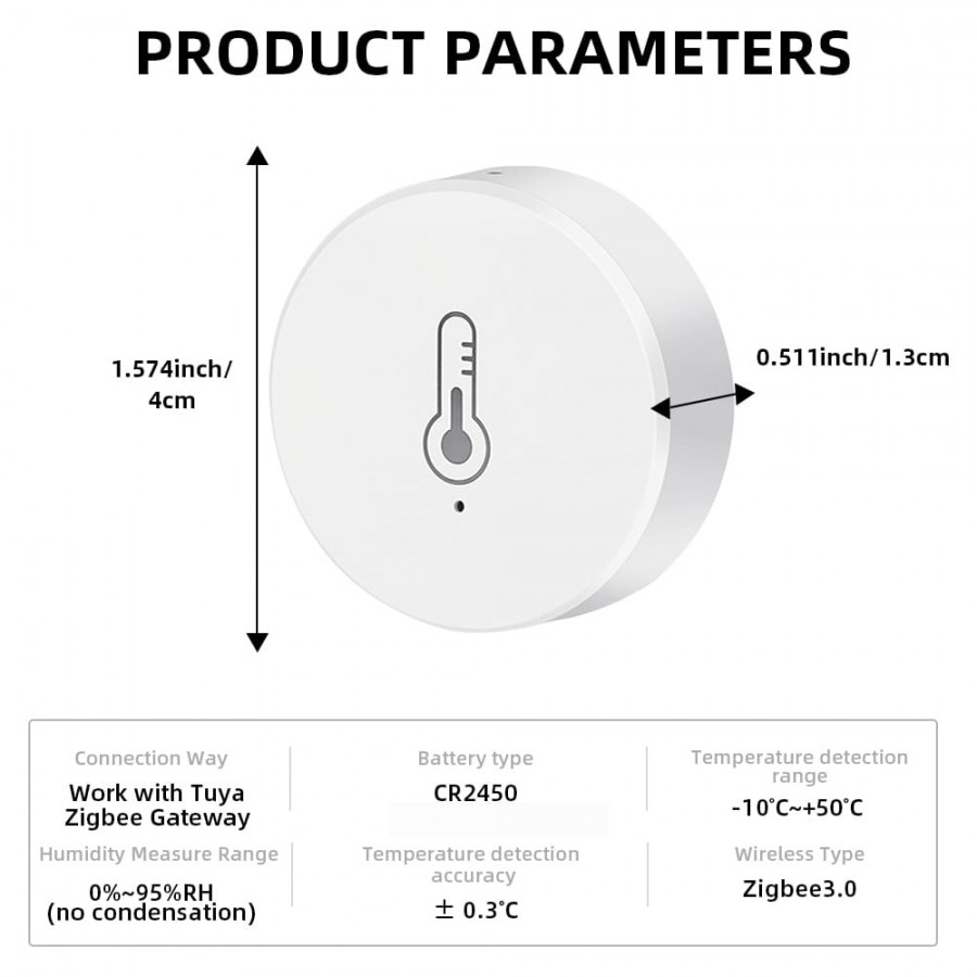 Датчик температуры/влажности Aalarm ZTHS-03 ZigBee 3.0 – компактная беспроводная модель, совместимая с системами умного дома работающими по протоколу ZigBee, и управляющаяся посредством программы Tuya Smart/Smart Life, установленной на смартфон.