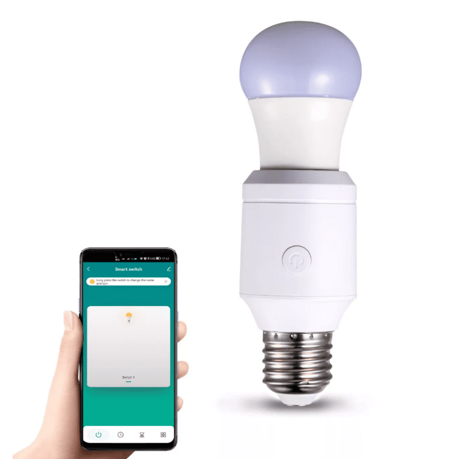 WiFi-патрон для лампы E27 с беспроводным радио-выключателем (RF 433) ALFA Socket W27-1 TuyaSmart/Smart Life предназначен для управления включением - выключением освещения по радиоканалу и посредством смартфона с установленной программой TuyaSmart(Smart Life) по сети WiFi без необходимости прокладки проводов от светильника к выключателю.