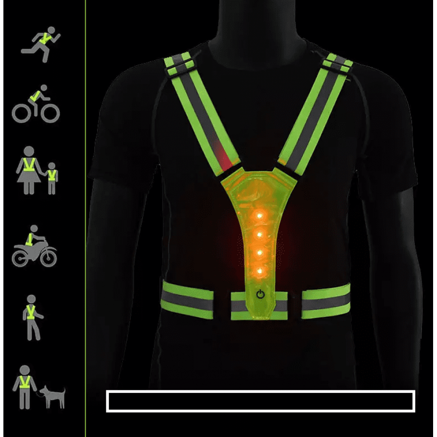 Дополнительно снабжен мощными светодиодами высокой яркости на груди и спине, для обеспечения отличной видимости в темное время суток всеми участниками дорожного движения.