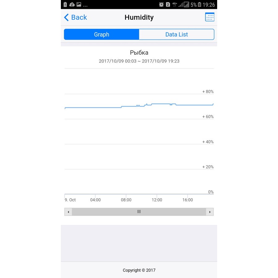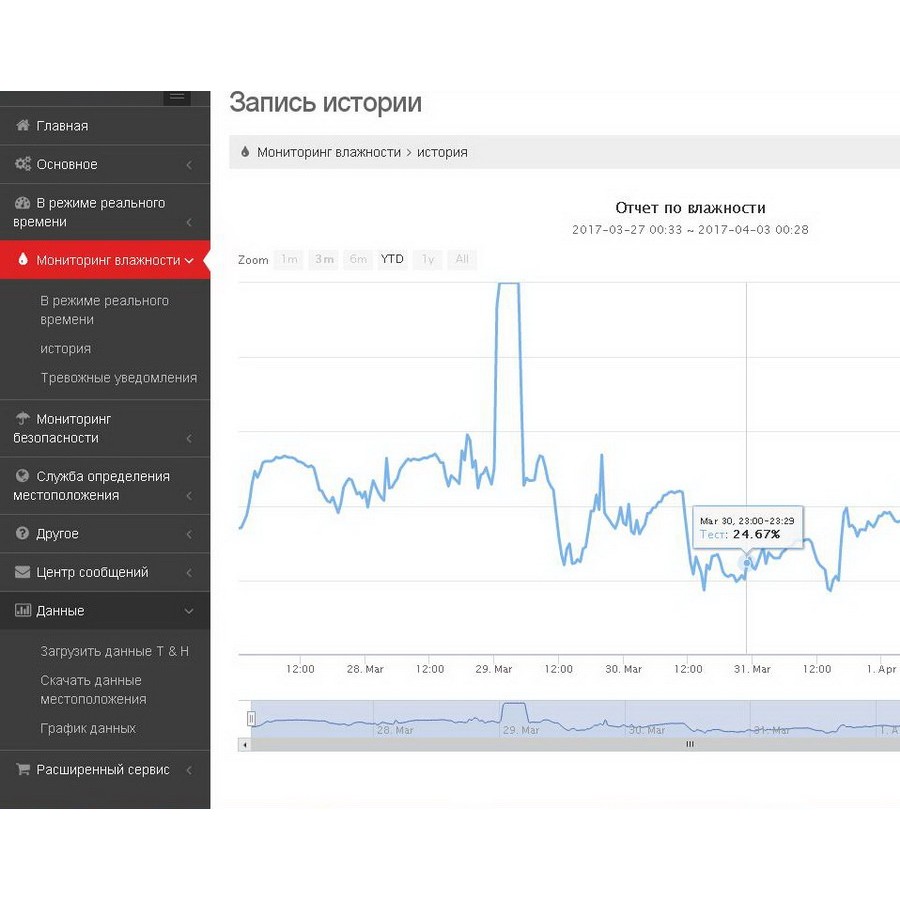 Удобный интерфейс. В личном кабинете пользователь может настроить мин. и макс. границы значений, а также посмотреть графики наблюдений за температурой, влажностью и состоянием заряда батареи. Данные хранятся бессрочно за весь период наблюдений.