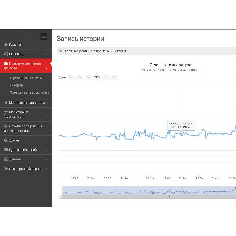 Круглосуточный мониторинг. Пороговые значения температуры и влажности настраиваются пользователем непосредственно на сервере или через смс команды. В случае выхода температуры за установленные границы измерений, вы получите тревожный e-mail, смс и push сообщение.