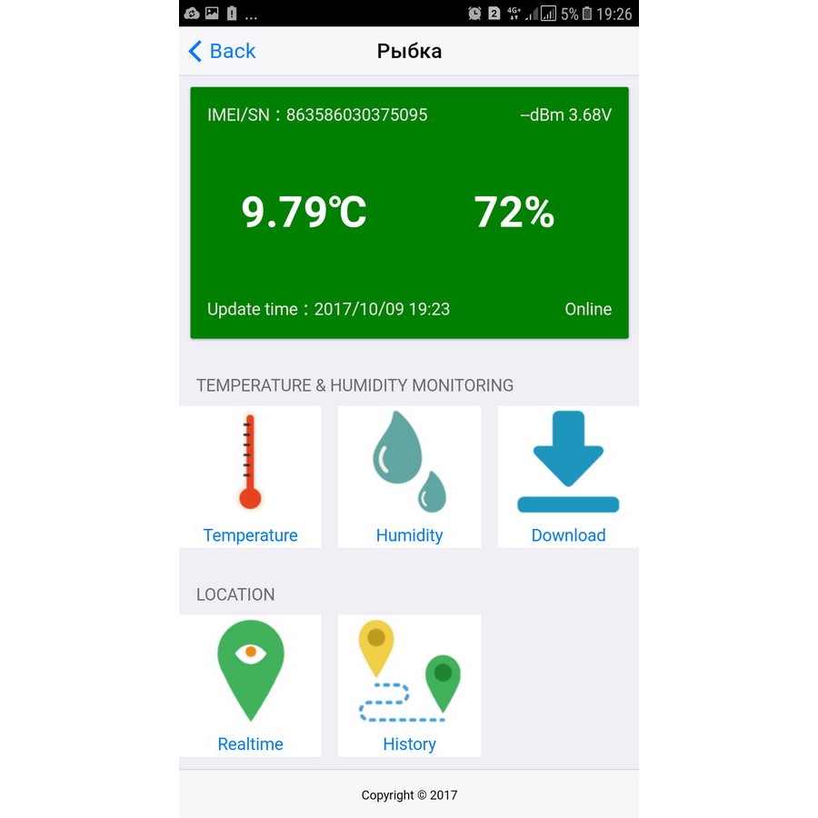 Устройство представляет собой контролер, передающий по GPRS или GSM каналу данные в облако на сервер, где пользователь с помощью мобильного телефона или стационарного компьютера может контролировать любые колебания температуры и влажности. Для удобства взаимодействия с устройством, возможно его программирование и мониторинг через смс сообщения.