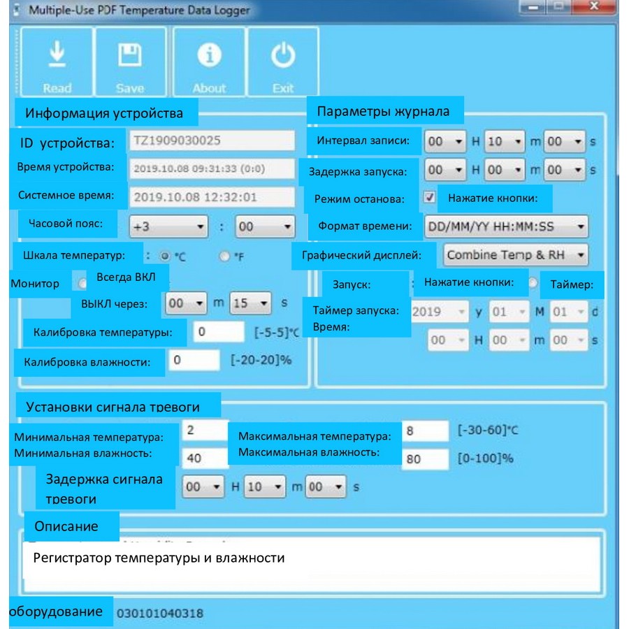 По умолчанию интервал измерений и записи данных в память устройства – 10 минут. При необходимости можно сократить интервал до 10 секунд или увеличить до 18 часов.